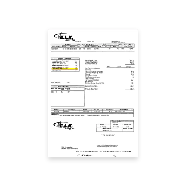 Download a high-quality, fully editable Canadian electricity bill PSD Template designed for professional use in video production, UI demos, visual design, and content creation. This layered PSD file replicates a realistic Canadian utility bill layout, with editable fields for name, address, usage details, barcode, and more.
