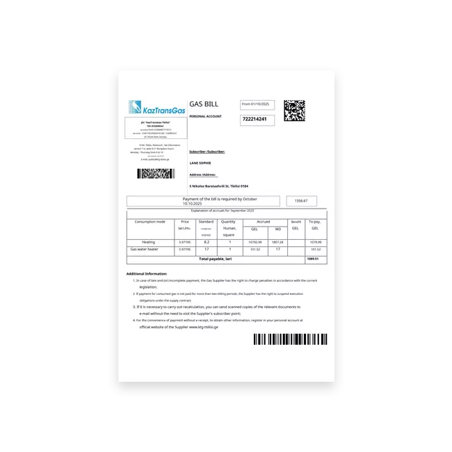 Use Cases For Georgia gas bill PSD Template :